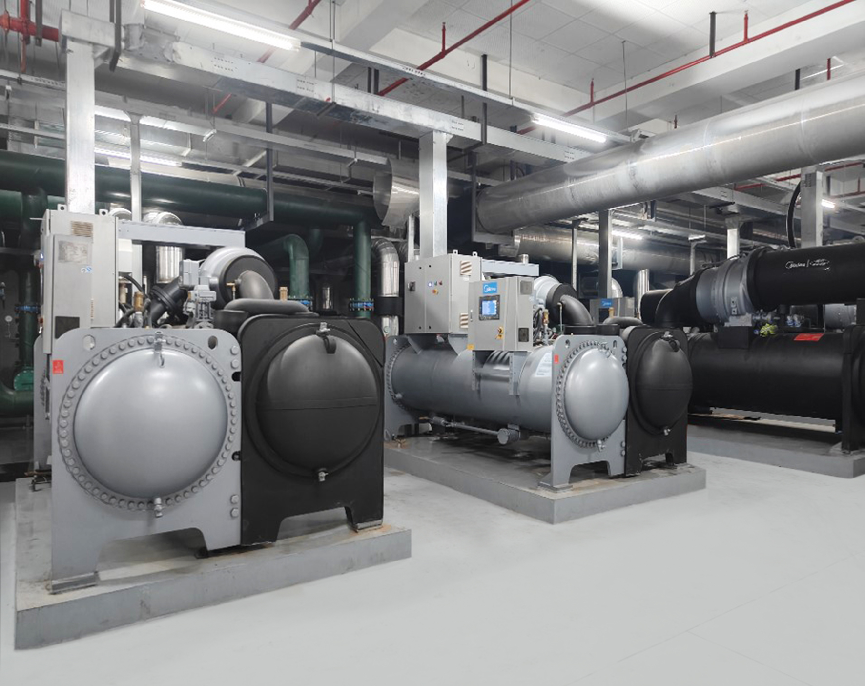 张江集成立异园项目位于上海市浦东新区康桥镇,总修建面积21.37万m?,中央空调系统设计面积约为11.5万m? ,系统为四管制。中央空调系统接纳离心机加锅炉,本次项目相助欧博abg为园区生物医药企业提供365天*24小时供能效劳,制冷装机容量为15400KW(三台10KV高压离心机+两台380V离心机组),供热装机容量为12600KW。