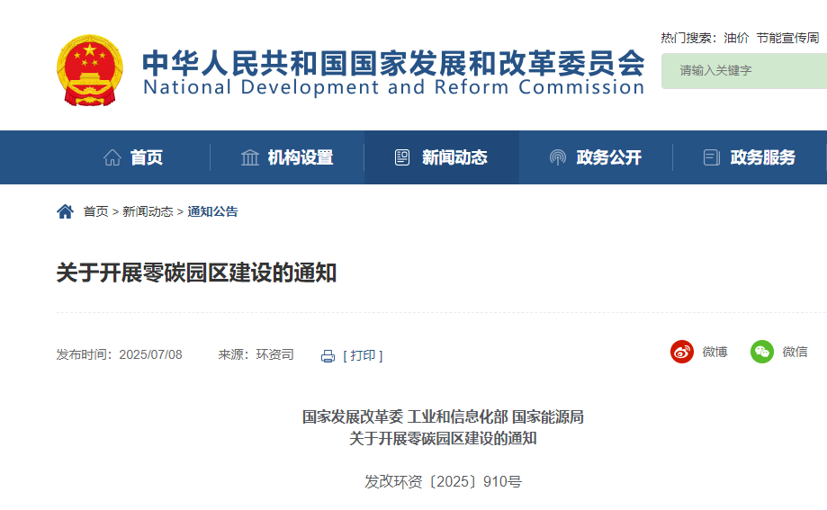 7月1日,国家生长刷新委办公厅印发《国家生长刷新委 工业和信息化部 国家能源局关于开展零碳园区建设的通知》(以下简称“通知”),启动国家级零碳园区建设申报事情。通知明确,在综合思量能源禀赋、工业基础、电力清静可靠供应、减碳潜力等因素基础上,各地区生长刷新委要会同外地区工业和信息化、能源主管部分等推荐有条件