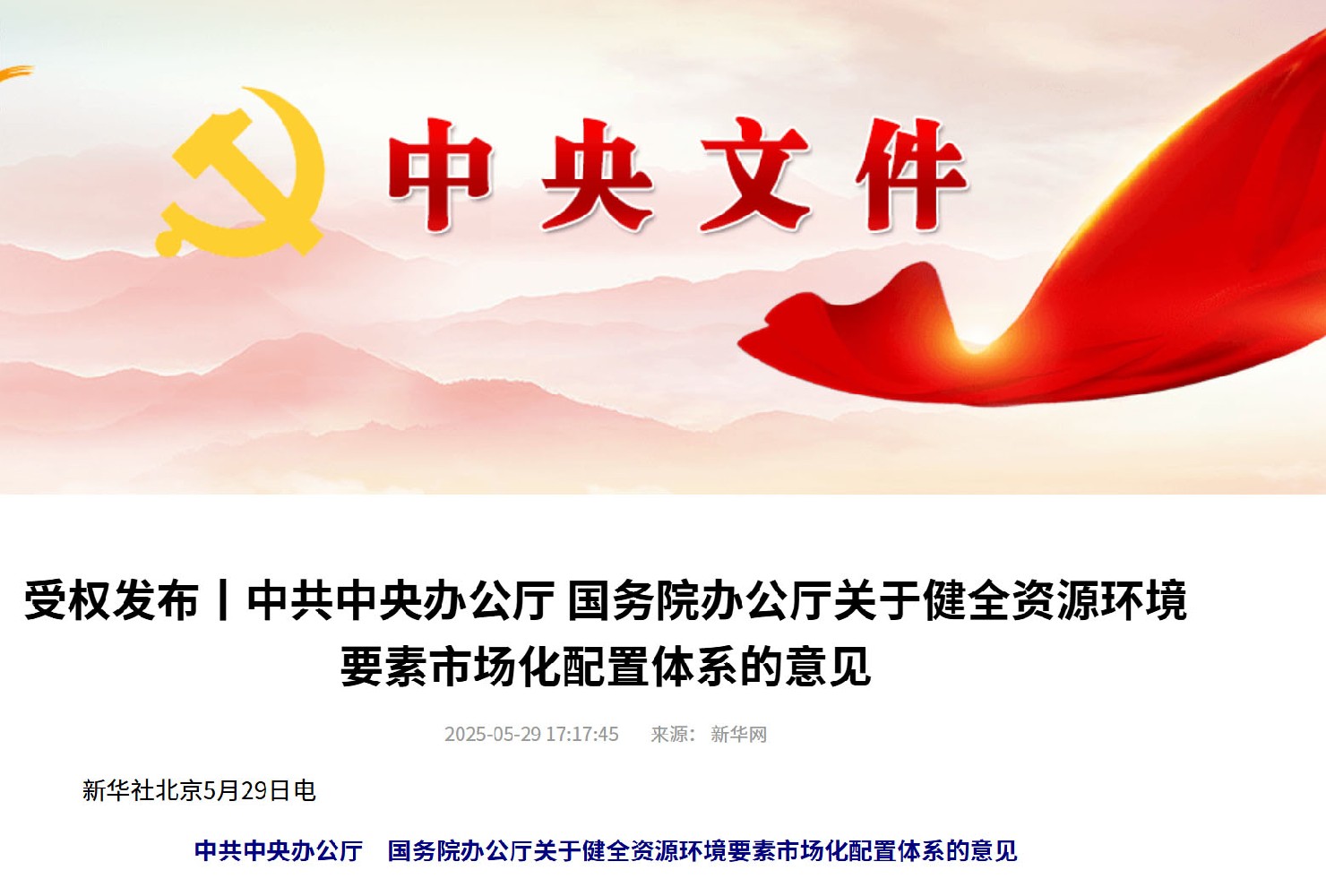 中办、国办印发《关于健全资源情形要素市场化设置系统的意见》,深化资源情形要素市场化设置刷新。意见提出,到2027年,碳排放权、用水权生意制度基本完善,排污权生意制度建设健全,节能市场化机制越发健全,资源情形要素生意市场越发活跃、价钱形成机制越发健全,推动资源情形要素流通流动、高效设置,充分释放市场潜力,