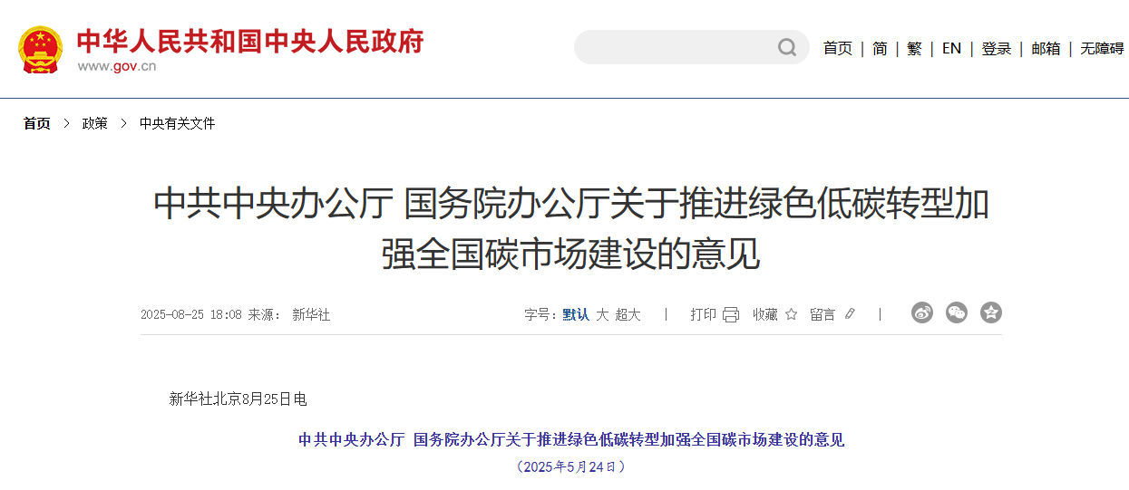 Öй²ÖÐÑë°ì¹«Ìü¡¢¹úÎñÔº°ì¹«Ìü¹ØÓÚÍÆ½øÂÌÉ«µÍ̼תÐÍÔöÇ¿ÌìÏÂ̼Êг¡½¨ÉèµÄÒâ¼û